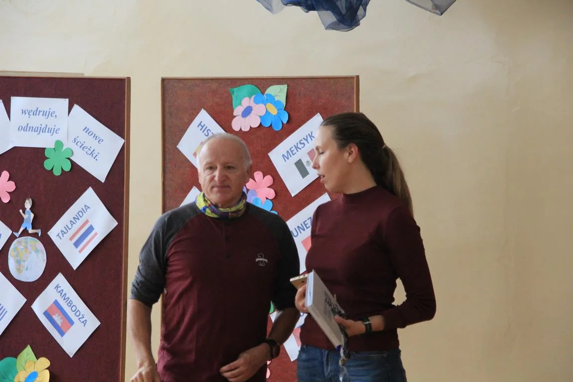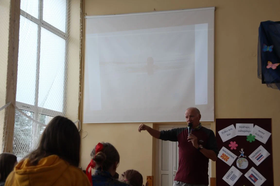 Niezwykły dzień uświetniło przybycie Pana Pawła Hofmana, zapalonego biegacza i globtrotera. Podczas spotkania z uczniami zaproszony gość opowiadał o swej sportowej pasji i biegowych podróżach.