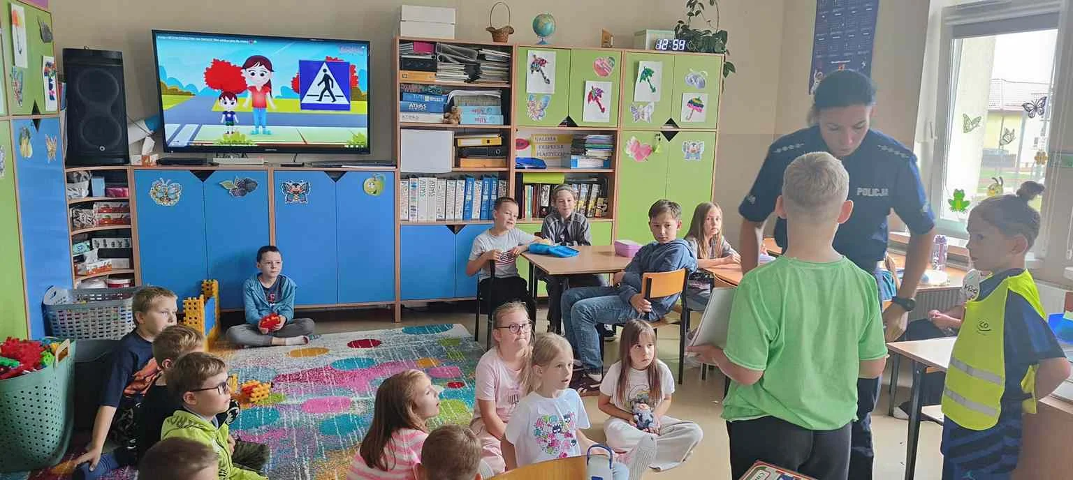 W świetlicy szkolnej odbyło się spotkanie z panią policjantką, która przypomniała dzieciom zasady bezpiecznego poruszania się po drodze. Uczniowie dowiedzieli się, jak ważne jest noszenie odblasków, szczególnie jesienią i zimą. Na zakończenie każde dziecko otrzymało odblask.