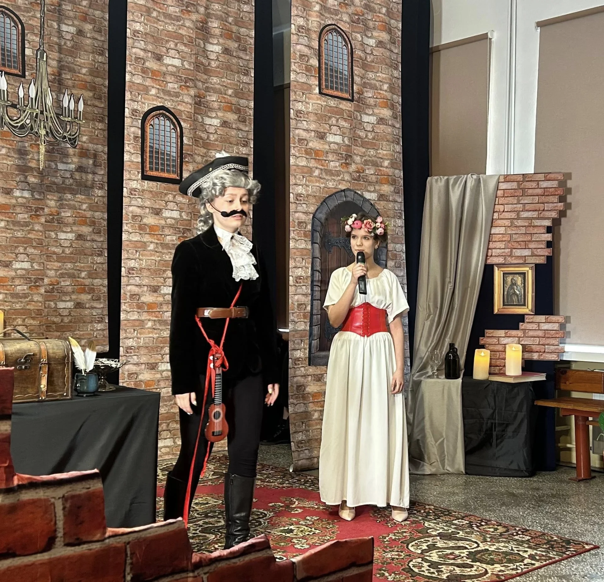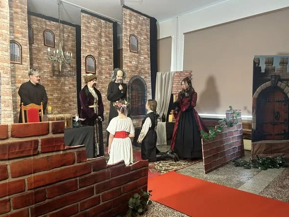 Młodzież przeniosła nas do świata „Zemsty” Aleksandra Fredry. Byliśmy zachwyceni nie tylko grą aktorską uczniów, ale i dekoracjami oraz strojami, które idealnie odwzorowały ówczesne realia życia.