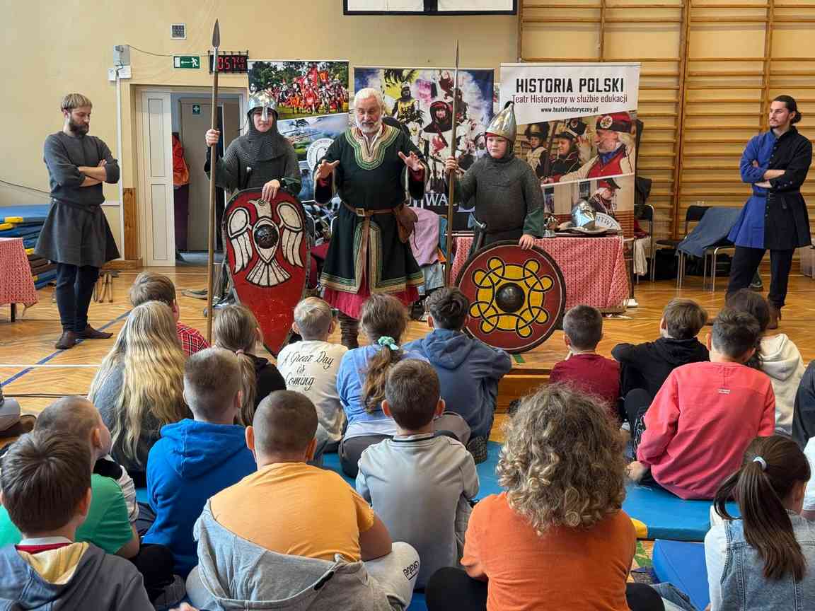 Uczniowie zabrali nas w podróż przez wieki, nawiązując tym samym do imienia naszej szkoły – Polskich Podróżników. Przypomnieli, jak zmieniały się środki transportu, szkoła i nauka na przestrzeni lat. Szczególną sceną był występ, w którym nauczycielka sterowana przez AI przypomniała, że w życiu najważniejsze są serce, uczucia i zrozumienie.