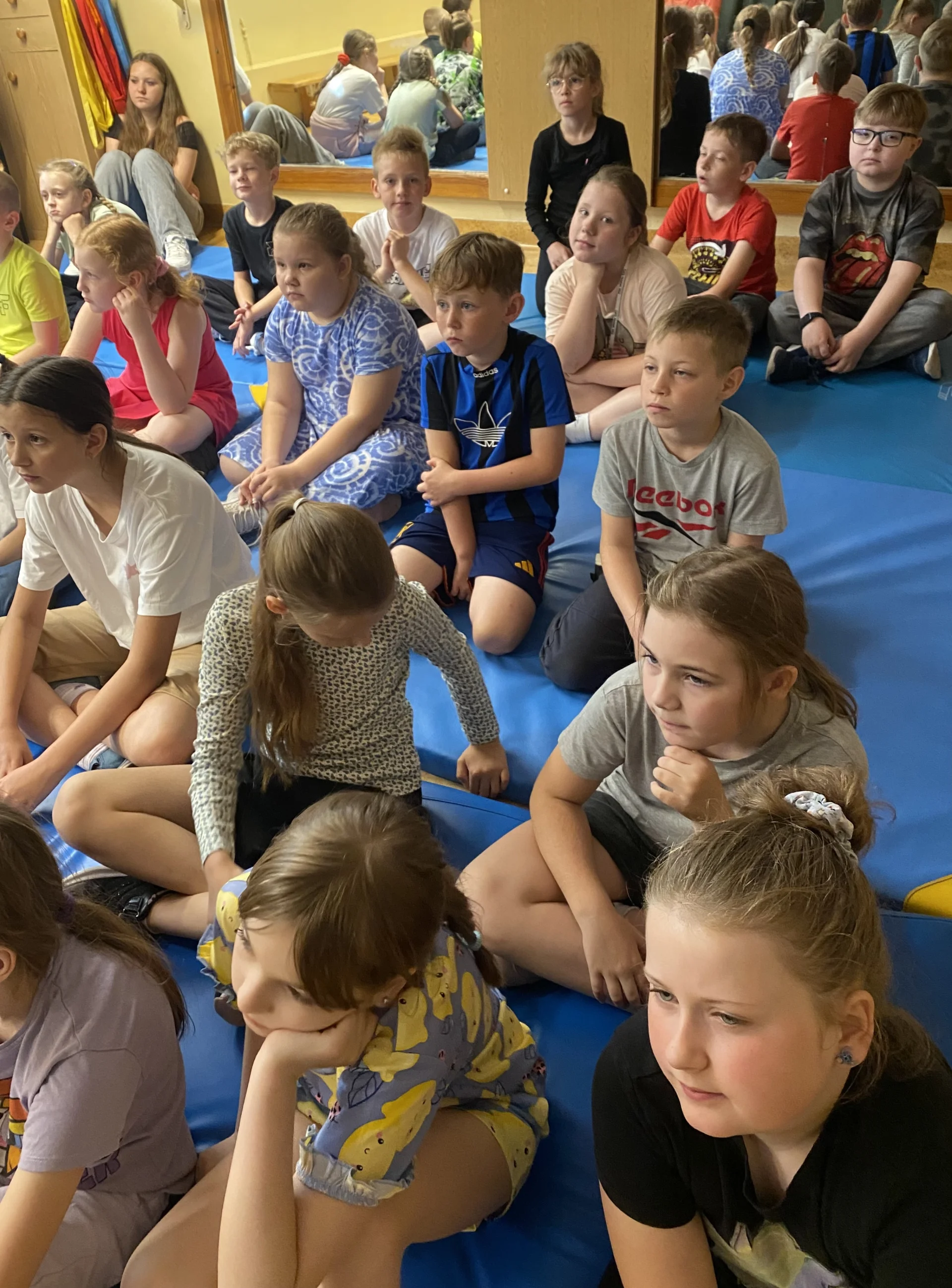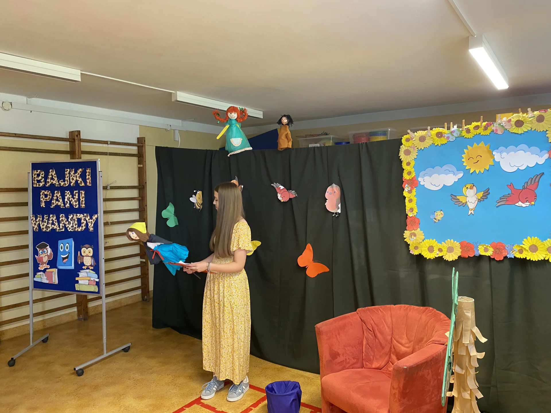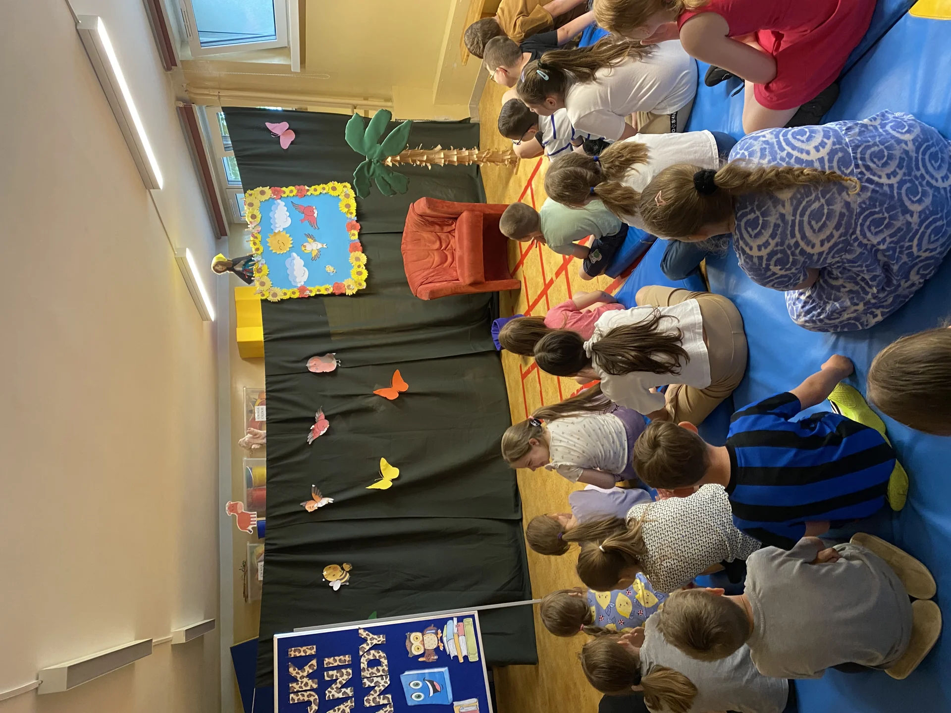 6 czerwca 2025r. uczniowie klasy 8b zaprezentowali kolegom i koleżankom z klas drugich przedstawienie kukiełkowe z wykorzystaniem utworów Wandy Chotomskiej. Podczas spektaklu panowała fantastyczna atmosfera, a nasi najmłodsi z wielkim zainteresowaniem śledzili losy bohaterów wierszy.