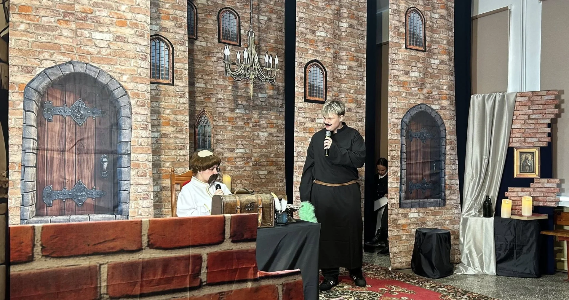 Młodzież przeniosła nas do świata „Zemsty” Aleksandra Fredry. Byliśmy zachwyceni nie tylko grą aktorską uczniów, ale i dekoracjami oraz strojami, które idealnie odwzorowały ówczesne realia życia.