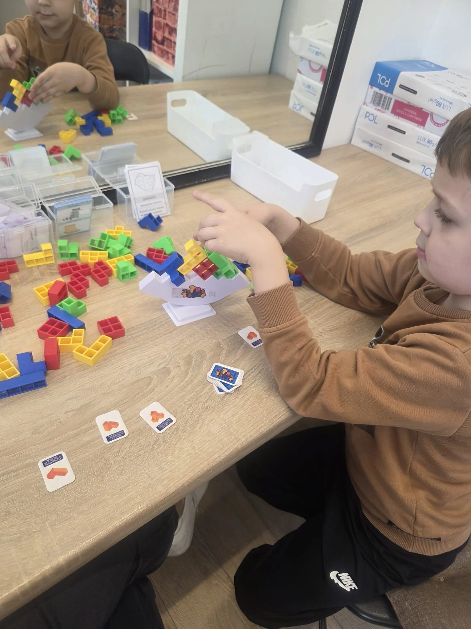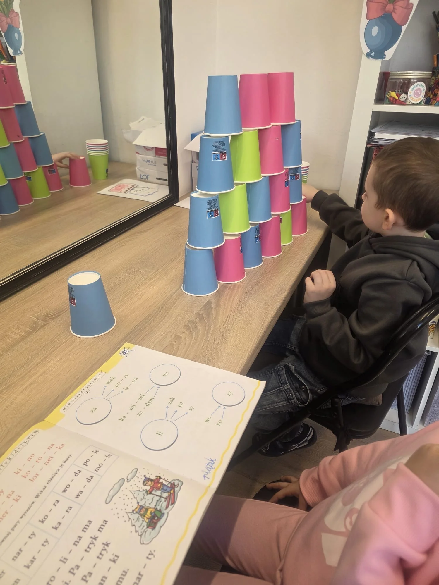 Łączymy naukę z zabawą. Wspieramy rozwój koordynacji wzrokowo-przestrzennej, motoryki małej, koncentracji oraz umiejętności planowania i logicznego myslenia. Nie brakuje ćwiczeń oddechowych, usprawniających apart mowy, rozwijajacych słownictwo, ćwiczeń artykulacyjnych. A wszystko to w parze z zabawą. Dmuchamy, budujemy, konstruujemy, czytamy, gramy, układamy.