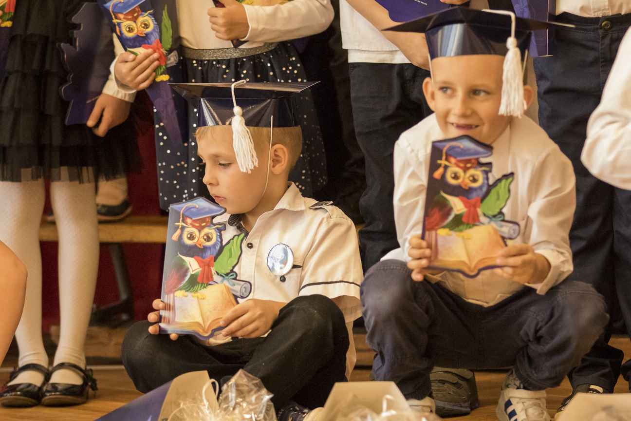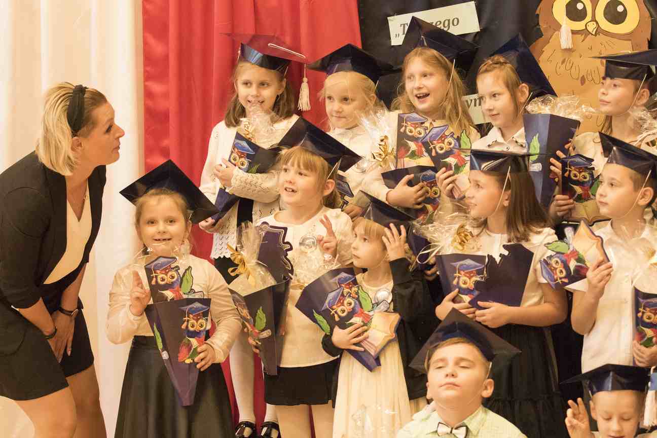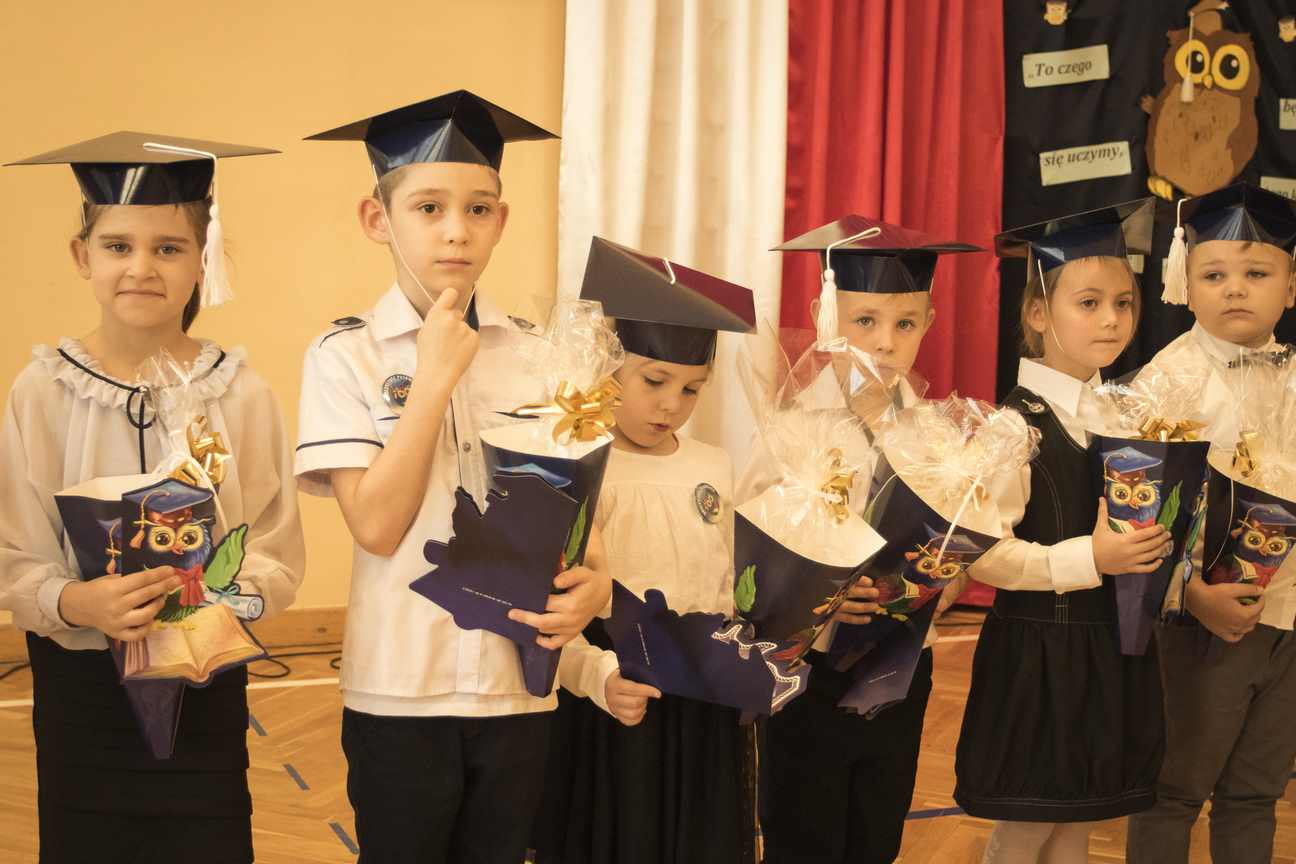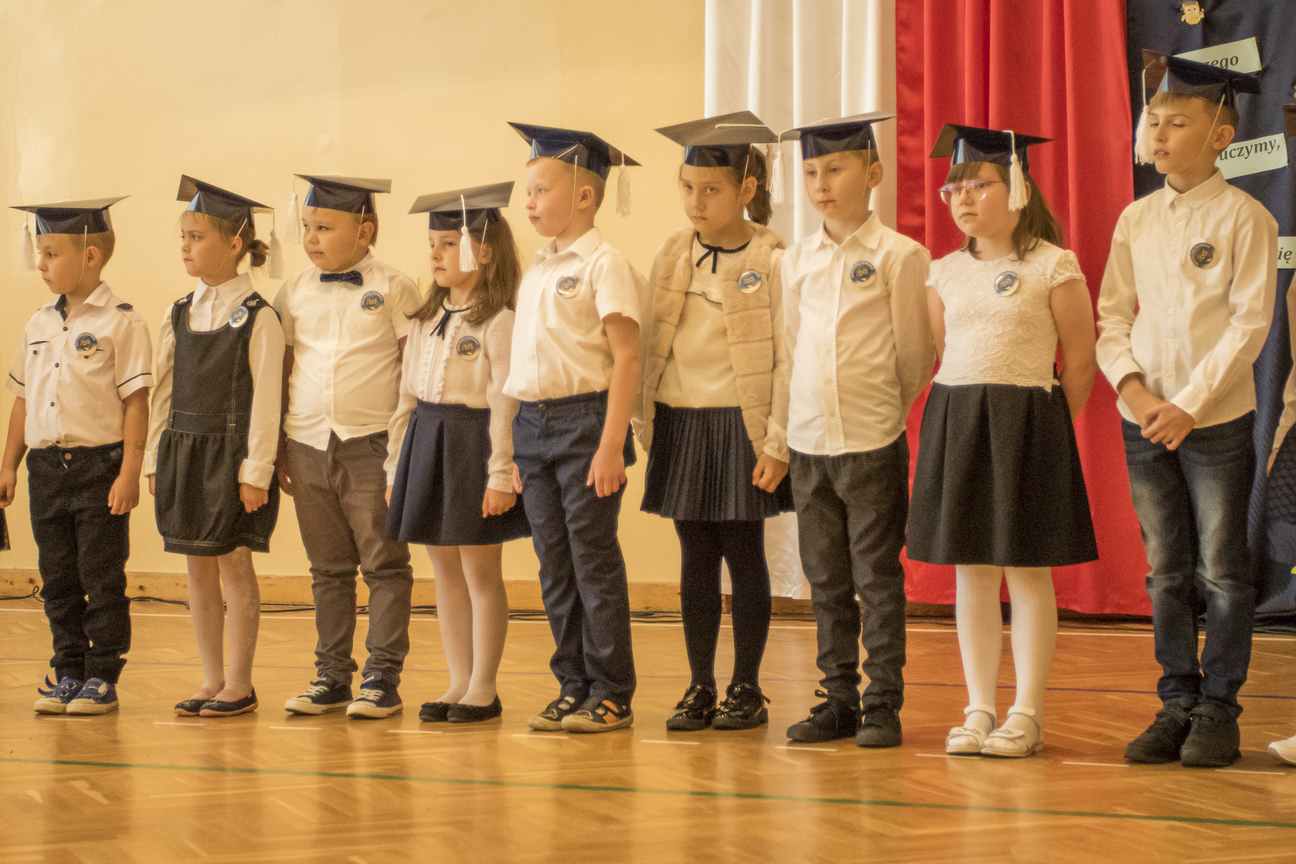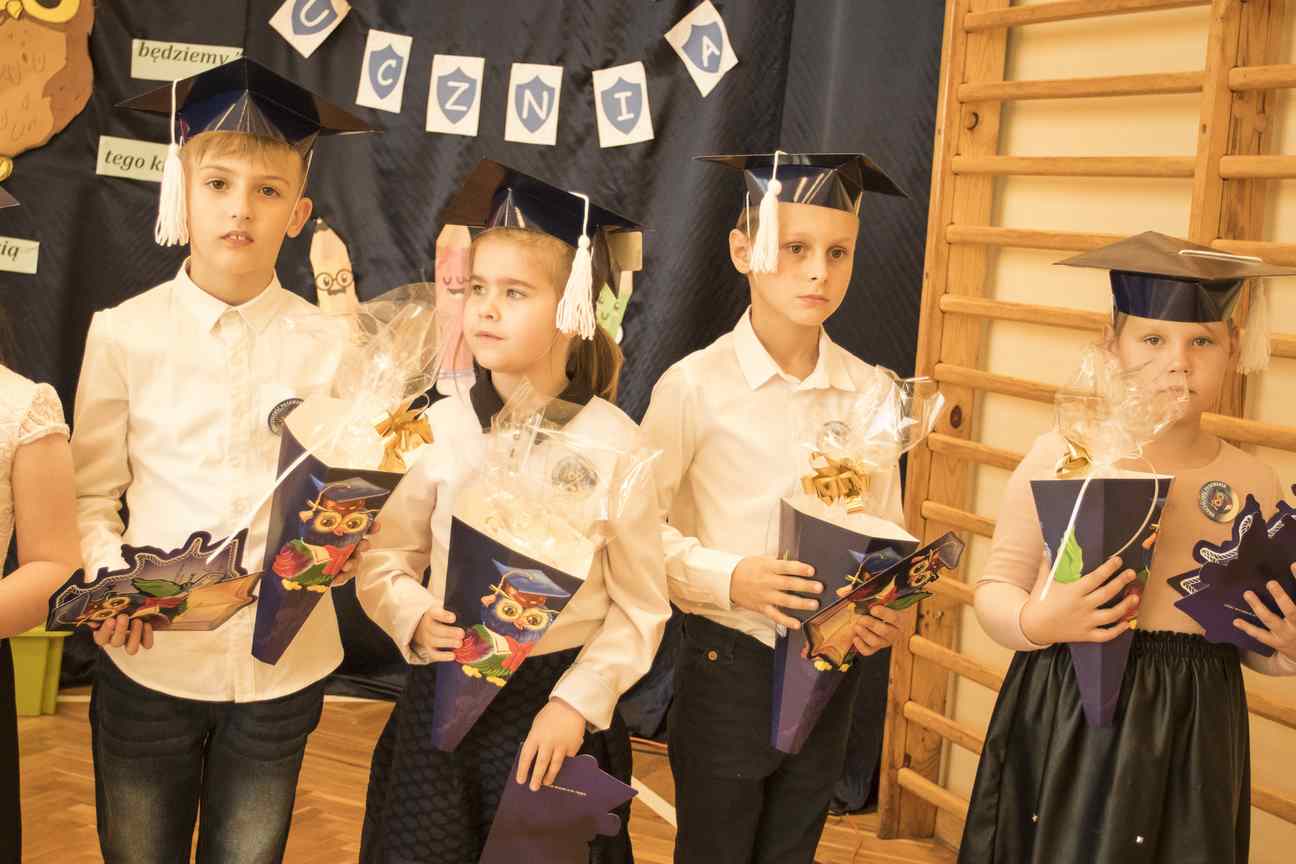 Dzieci odświętnie ubrane, w biretach na głowach, rozpoczęły spotkanie od wejścia w rytm pięknego marsza. Pierwszaki zaprezentowały cały wachlarz umiejętności i wiadomości, świadczących o tym, iż są gotowe, aby stać się pełnoprawnymi uczniami Szkoły Podstawowej nr 4 im. Polskich Podróżników w Iławie. Po pięknie zaśpiewanych piosenkach, recytowanych wierszach, poprawnie udzielonych odpowiedziach i rozwiązaniach zagadek, przystąpiły do aktu ślubowania. W towarzystwie swoich wychowawczyń, dyrekcji szkoły oraz rodziców, patrząc na sztandar naszej szkoły, przyrzekły, iż będą jak najlepiej wykonywać obowiązki uczniów. Następnie odbyło się pasowanie. Pani dyrektor, Iwona Piankowska, dotykając ogromnym ołówkiem lewego ramienia dzieci, wygłaszała słowa: „Pasuję Cię na ucznia Szkoły Podstawowej nr 4 im. Polskich Podróżników w Iławie”. Wychowawczynie poszczególnych klas, p. Katarzyna Romanowska, p. Edyta Witkowska, p. Joanna Meller, wręczyły dyplomy oraz piękne rożki, pełne słodyczy. Uroczystość zakończyła się pamiątkowymi zdjęciami.