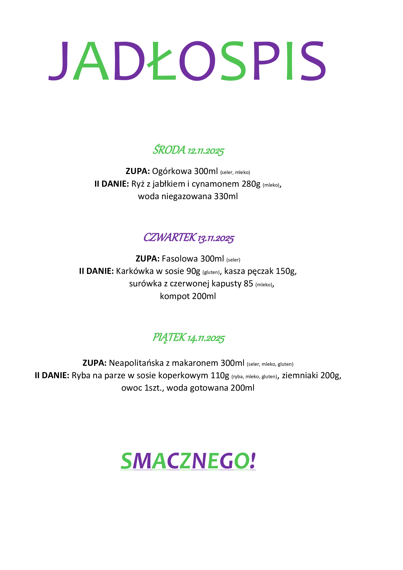 Jadłospis na tydzień 12-14.11.2025 r.